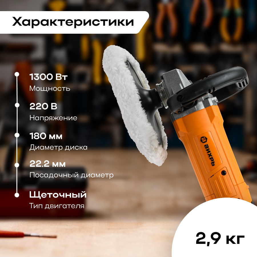 Полировальная машина УШМ-180/1300П Вихрь, 1300Вт, 180мм информация: