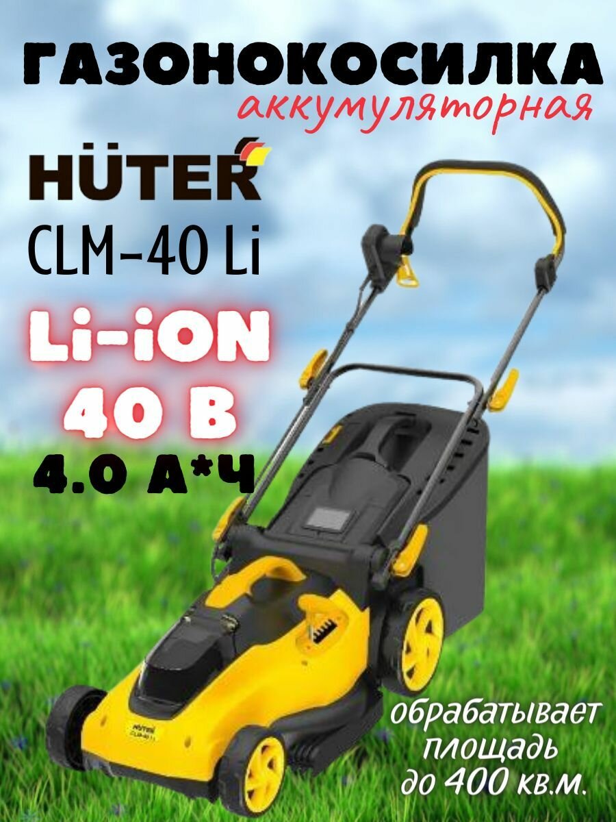 Газонокосилка аккумуляторная Huter CLM-40 Li, 40 В, скашивание 25-55 мм, ширина обработки 37 см / садовая техника Хютер для дачи и сада, электрокосилка для стрижки газона и травы информация: