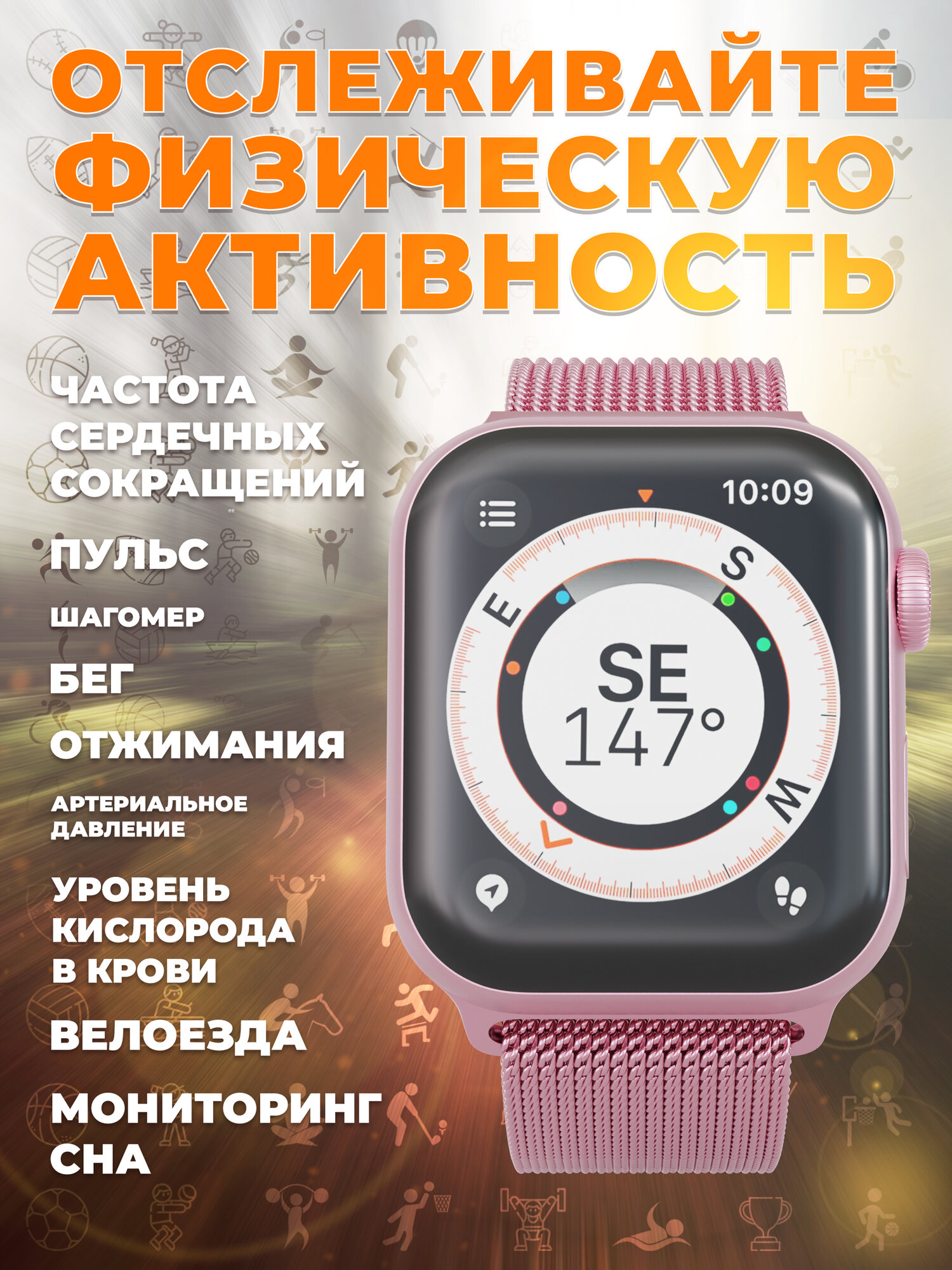 | Мониторинг | акселерометр, калорий, пульса, сна, температуры тела, термометр, тонометр, уровня кислорода в крови, физической активности |