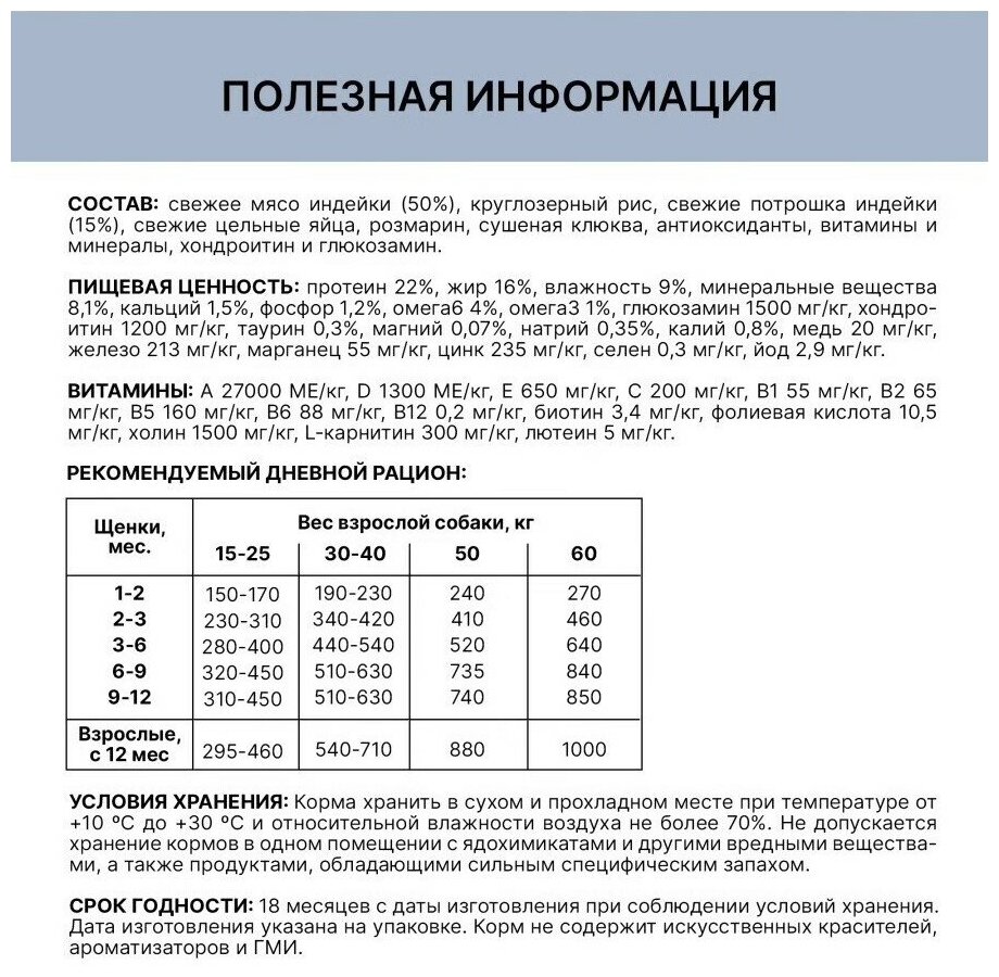 | Дополнительная информация | Гипоаллергенный продукт; не содержит кукурузы и пшеницы |
