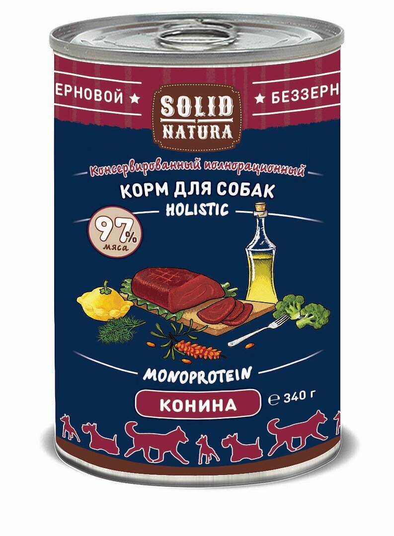 Влажный корм для собак Solid Natura Holistic конина, упаковка 12 шт х 340 г информация: