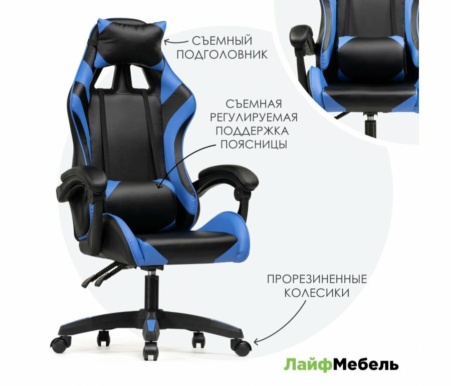 Компьютерное кресло Лайфмебель Rodas black / blue с подголовником и подлокотниками 10 130 ₽