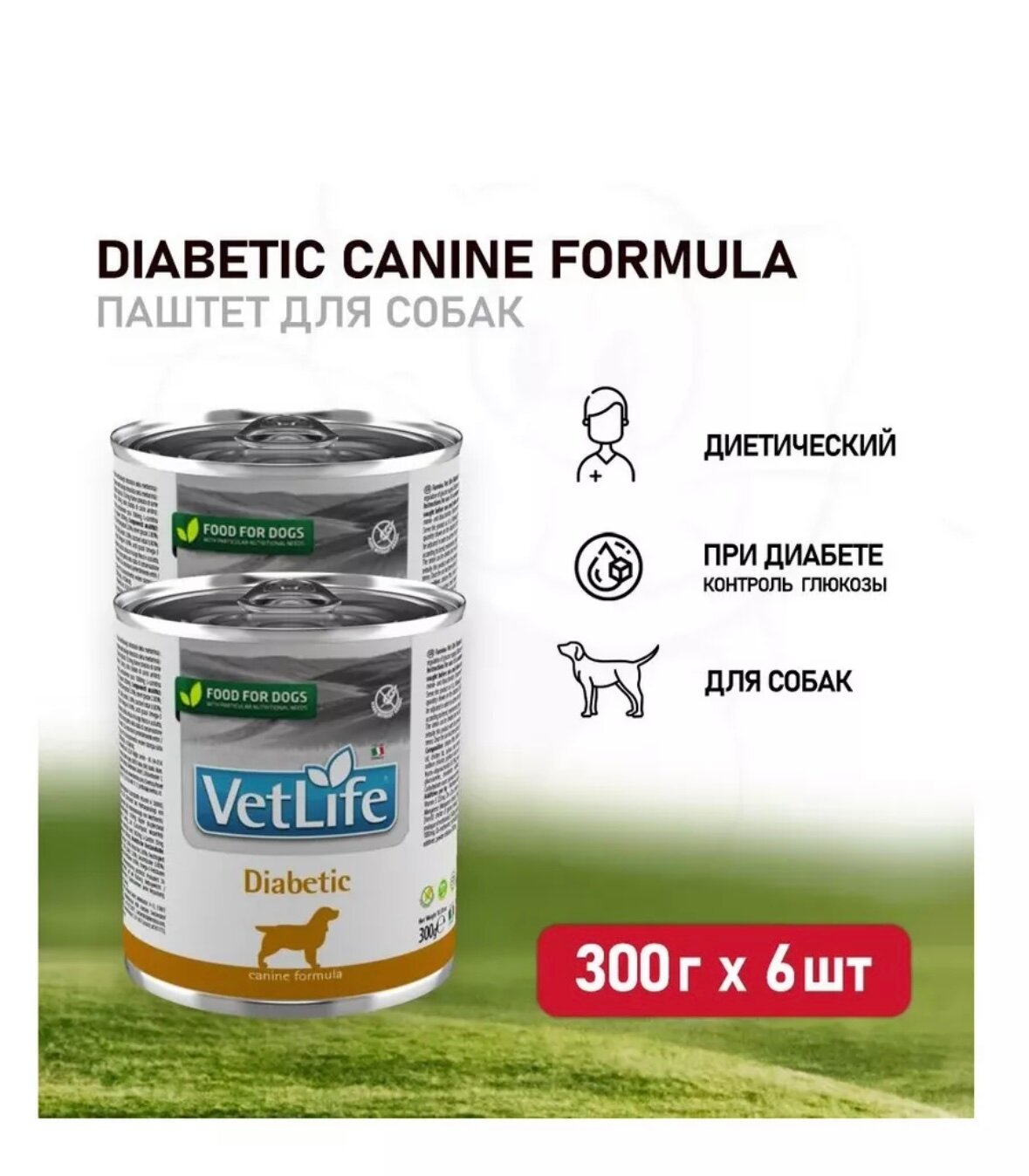 Диетические консервы для собак Farmina Vet Life Diabetic при диабете, паштет, упаковка 6* 300 гр 2 850 ₽