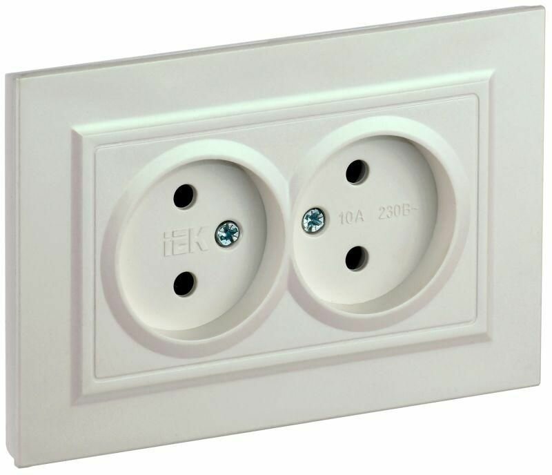 14шт. - BRITE Розетка двойная без заземления без защитных шторок 10А в сборе РС12-2-БрБ белый / IEK; арт. BR-R20-10-K01-F; оригинал / - комплект 14шт 3 448 ₽