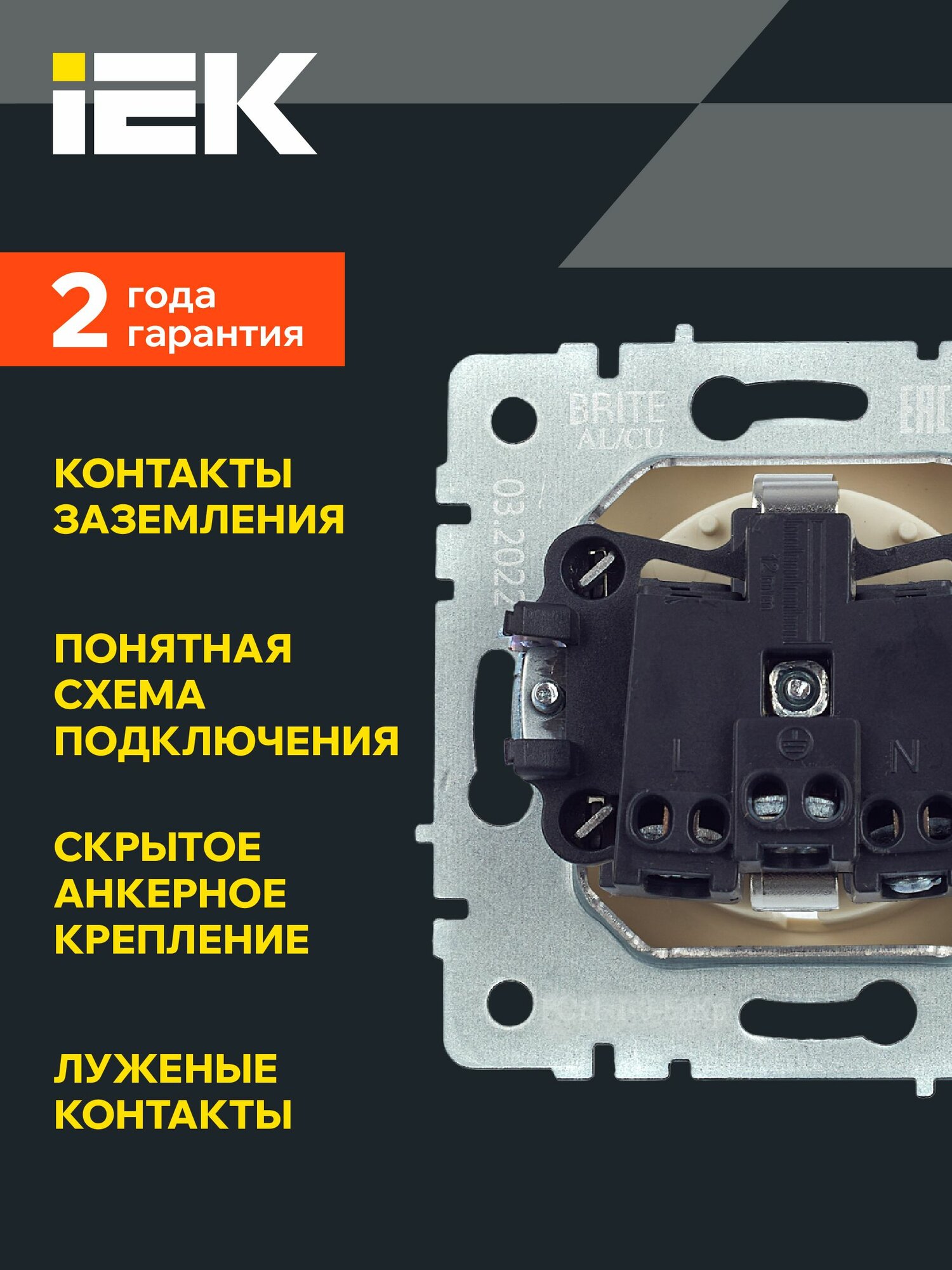 Розетка BRITE РС11-1-0-БрКр 16А с заземл. без защ. шторки беж. | код BR-R11-16-K10 | IEK ( 1шт. ) 796 ₽