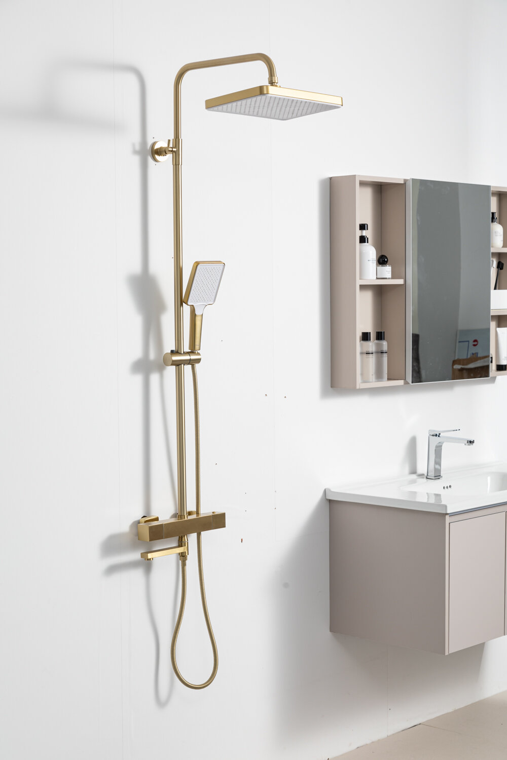 Душевая система с термостатом и тропическим душем Frap F24007-3 цвет золотой сатин информация: