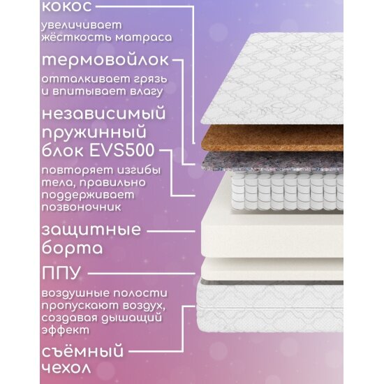 Фабрика Сна Матрас EDMOND, независимые пружины, кокос, средняя жесткость, анатомический, 90х200 см
