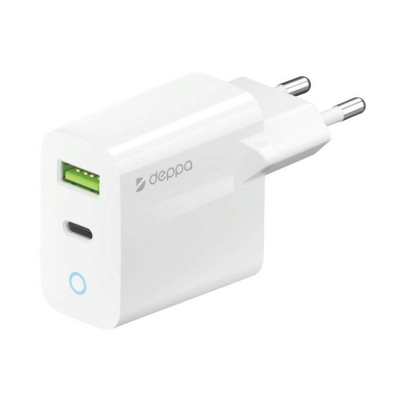 Сетевое ЗУ Deppa USB-A + USB-C, QC 3.0, PD, 33 Вт, белый