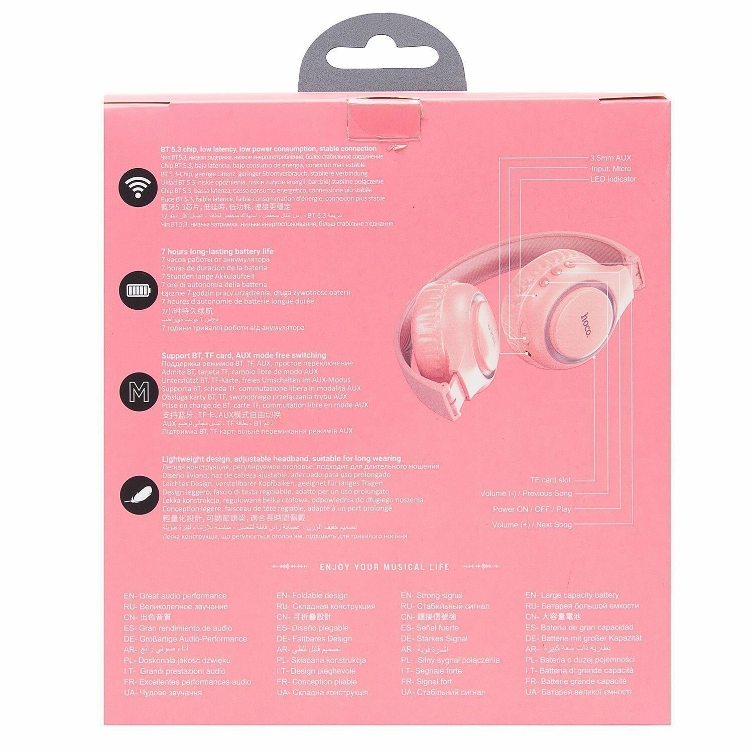 Наушники беспроводные с микрофоном Hoco W41 Charm, розовые информация: