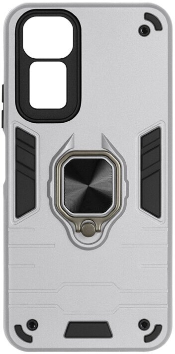 Противоударный чехол на Tecno Pova Neo 3 (LH6n) (6.82"), серебро. Кольцо-держатель и магнитное крепление, яркие пластиковые защитные вставки