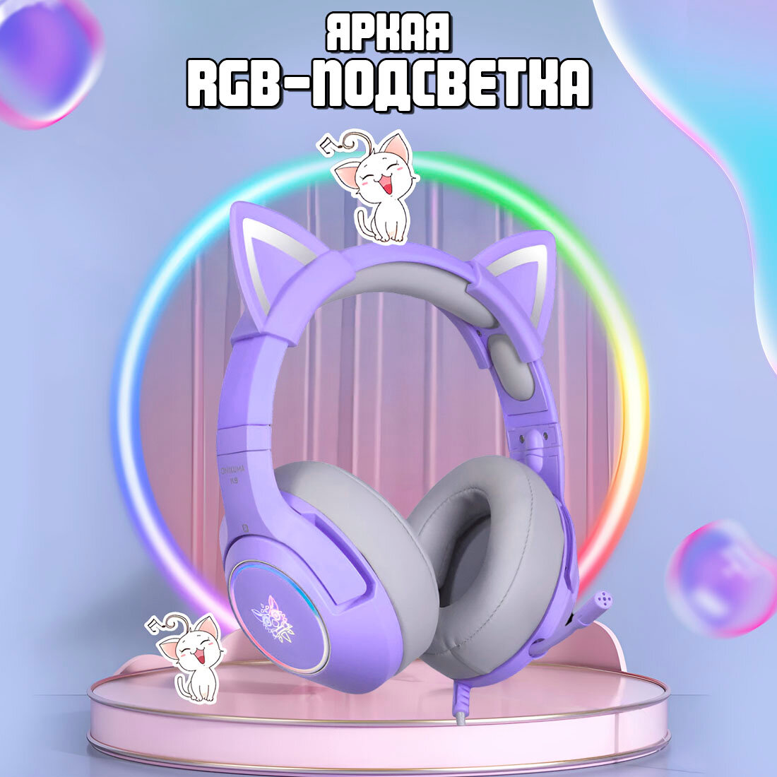 Игровые проводные наушники ONIKUMA K9 с RGB подсветкой и съемными ушками, Фиолетовые информация: