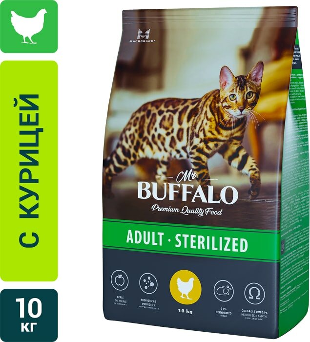 Mr.BUFFALO ADULT STERILIZED сухой для стерилизованных кошек Курица 10кг информация: