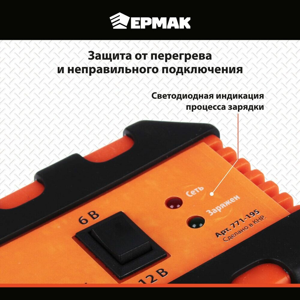 Зарядное устройство импульсное ермак, автомат, 2.7 A, 6В/12В, пластик корпус информация: