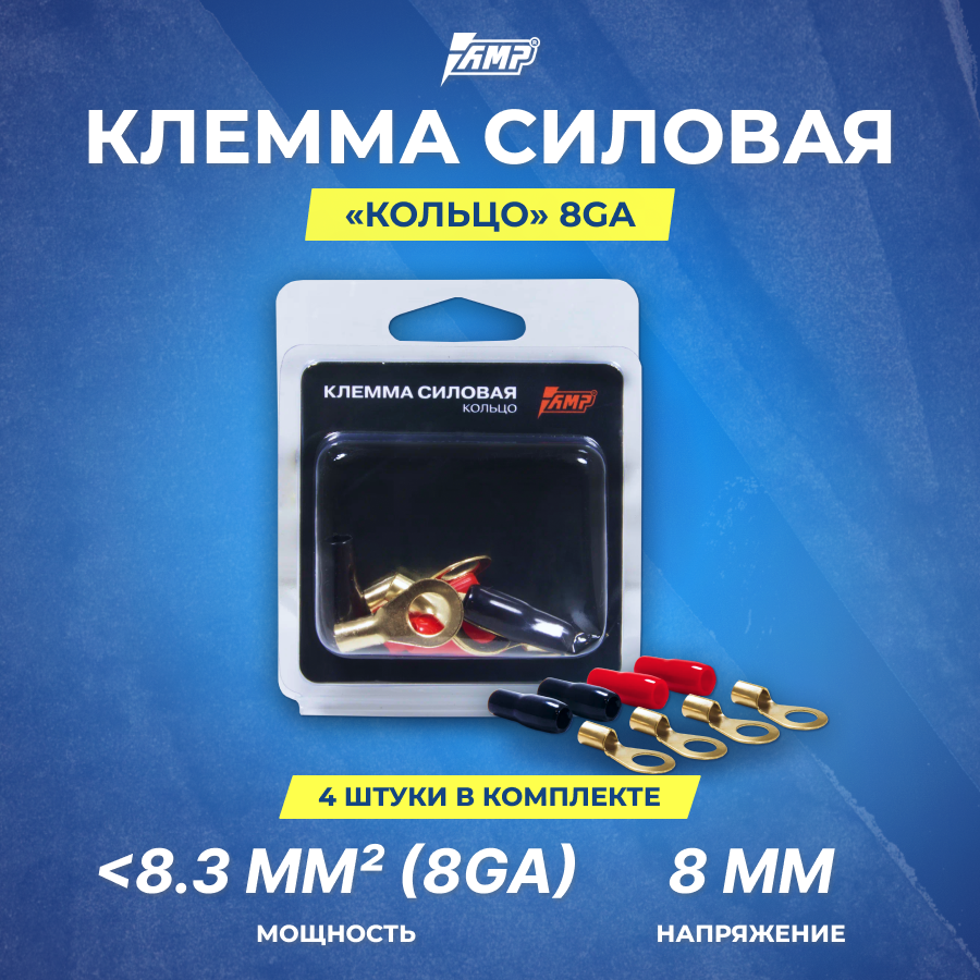 Клеммы силовые AMP "Кольцо", 8Ga, черные, для автомагнитолы, 4 шт информация: