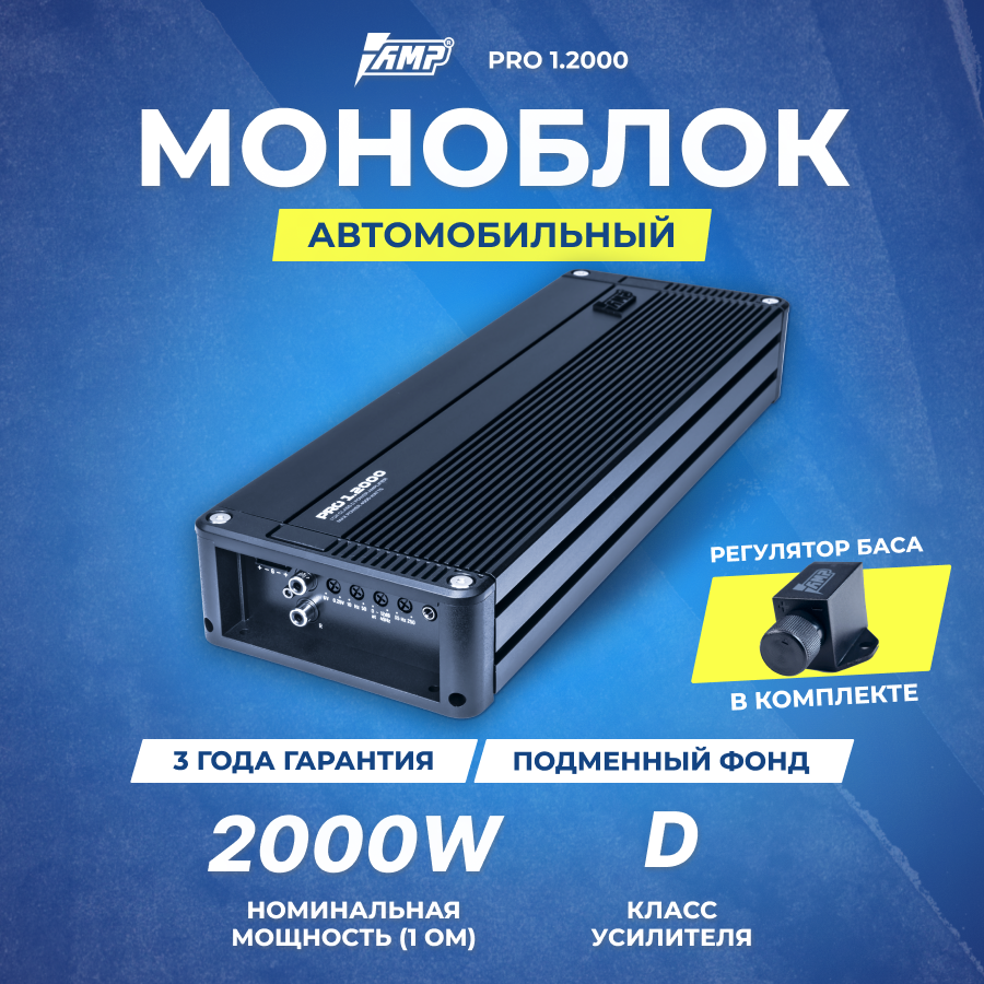 Отзывы на Усилитель автомобильный AMP PRO 1.2000, класс D, 2 канала, 1380/830/2000Вт