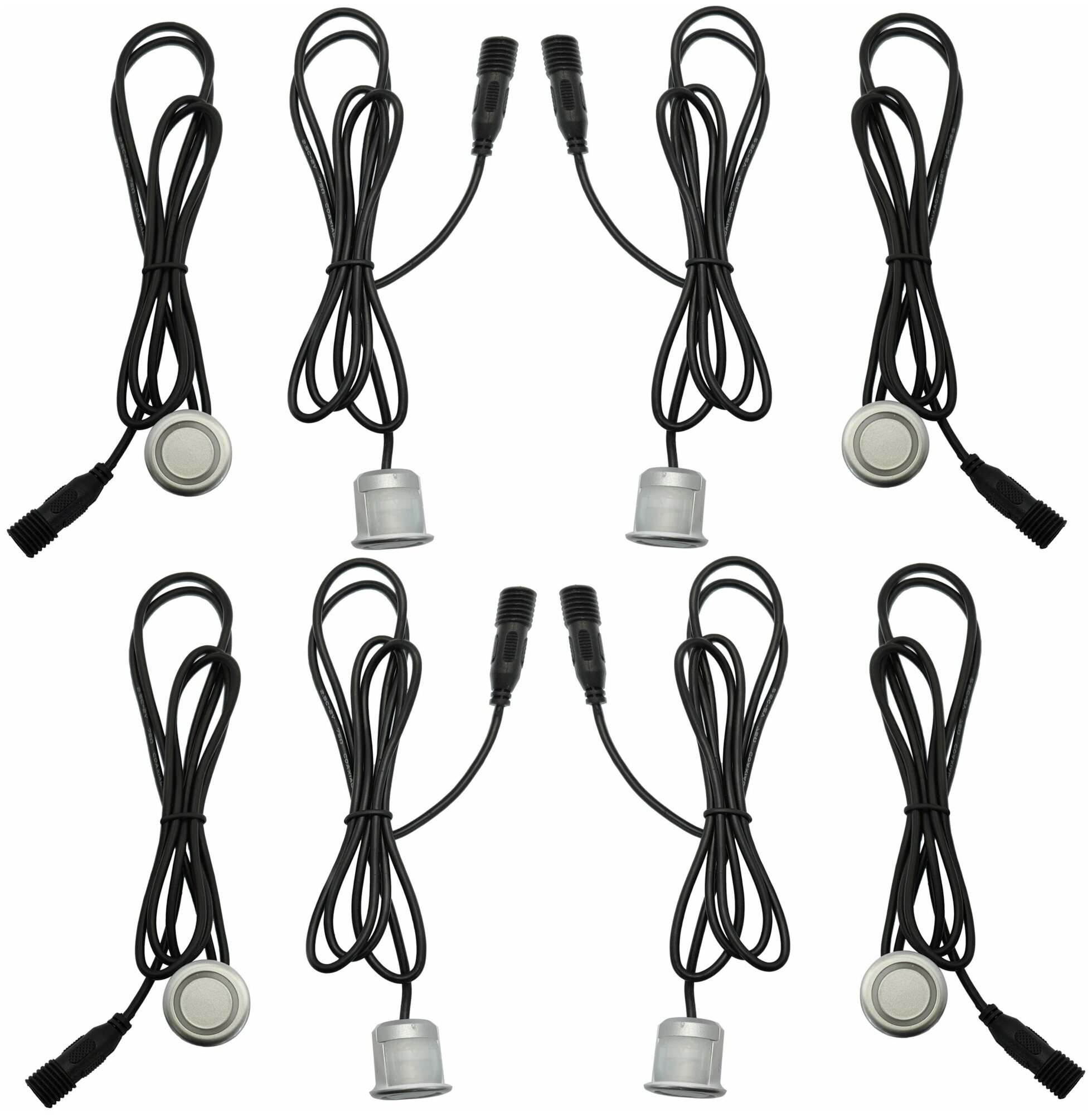 Комплект 4 универсальных датчиков 18 мм парктроника (Разъемный, металл, серебро)