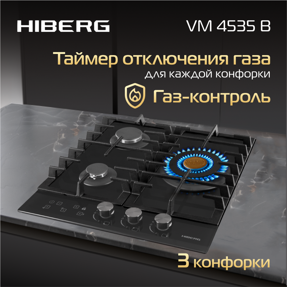 Газовая варочная панель 45*51 HIBERG VM 4535 B "Черное стекло" информация: