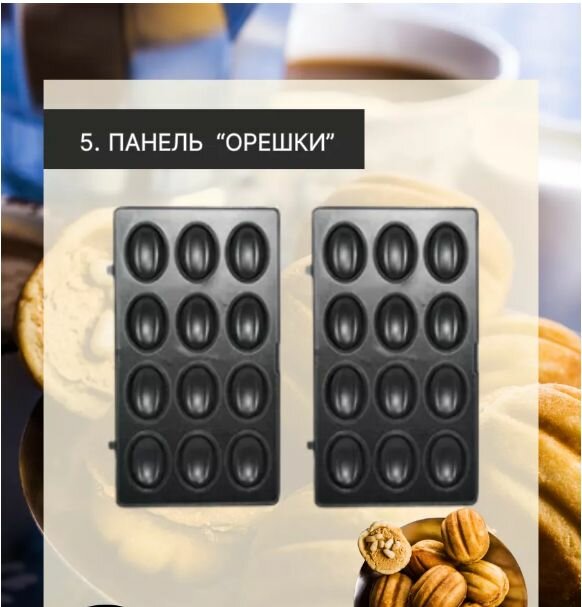 | Вид панели | вафли / выпечка и печенье / гриль / котлеты / оладьи / орешки / пончики / пряники / ракушки / сырники / сэндвичи |