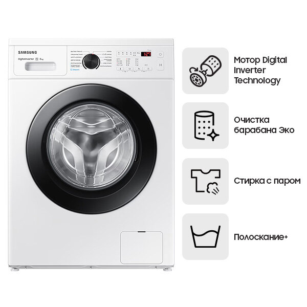 Стиральная машина фронтальная SAMSUNG WW60AG4S00CE/LD белый/серебро (6 кг, диспл, пар, инвертор, дозагрузка)
