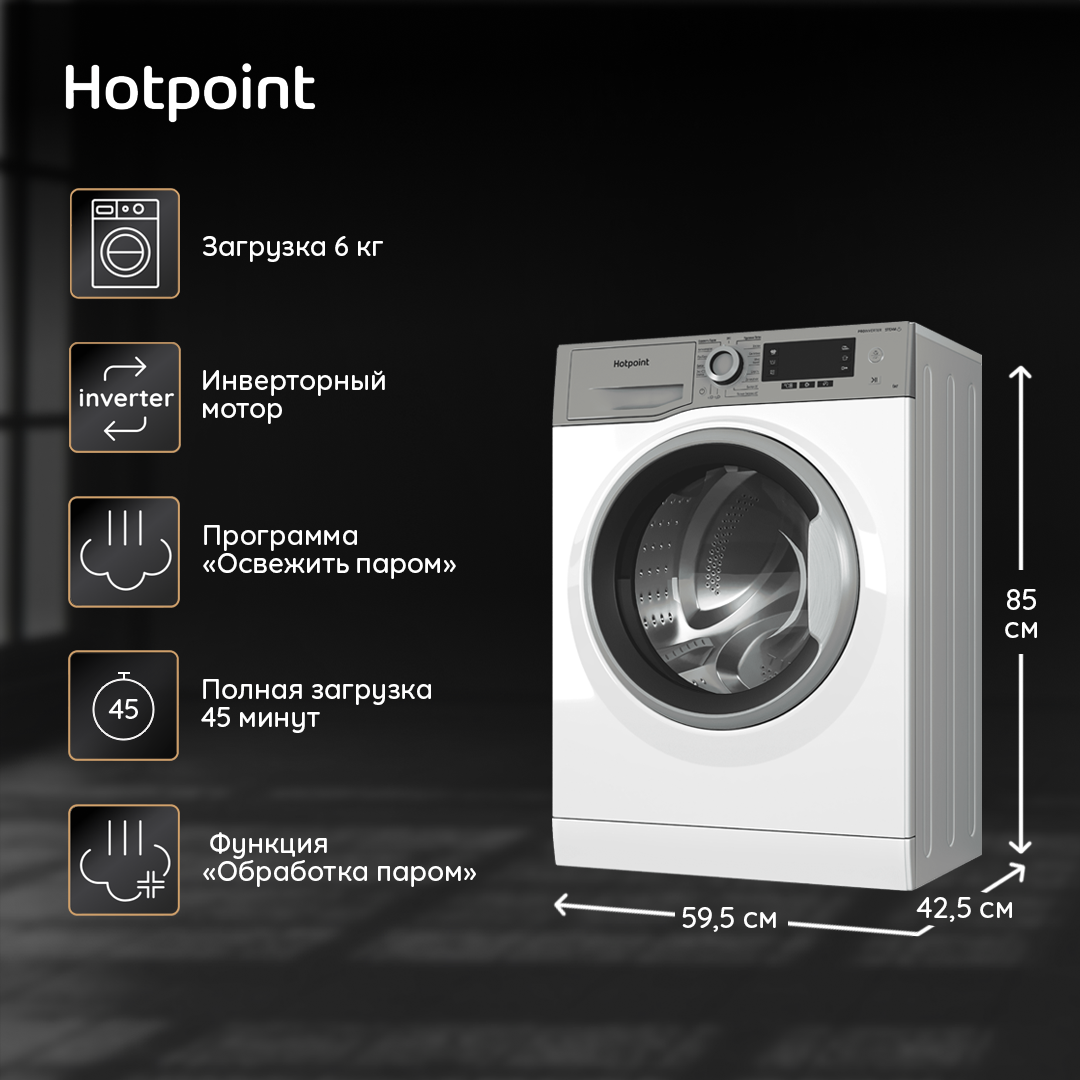 Стиральная машина Hotpoint NSD 6239 S VE RU, с фронтальной загрузкой, 6кг, 1200об/мин (869991652910) 28 695 ₽