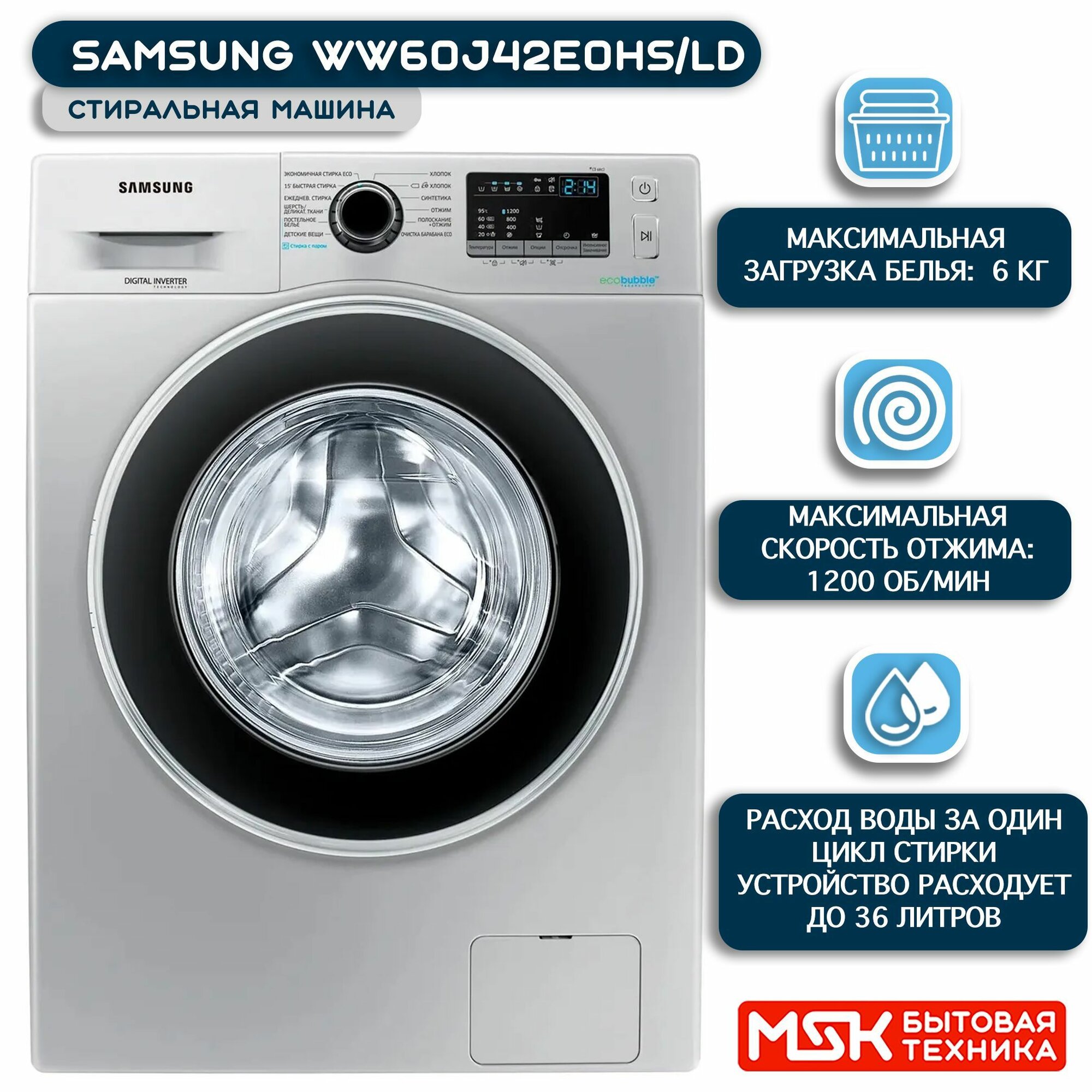 Стиральная машина Samsung WW60J42E0HS/LD фронтальная макс 6кг серебристый информация: