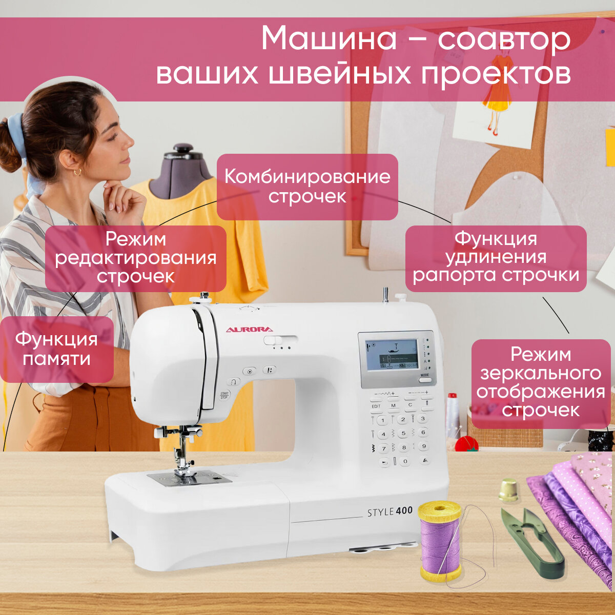 Отзывы на Швейная машина AURORA Style 400, белая, мощность 70Вт. ротационный горизонтальный челнок Более 400 операций.
