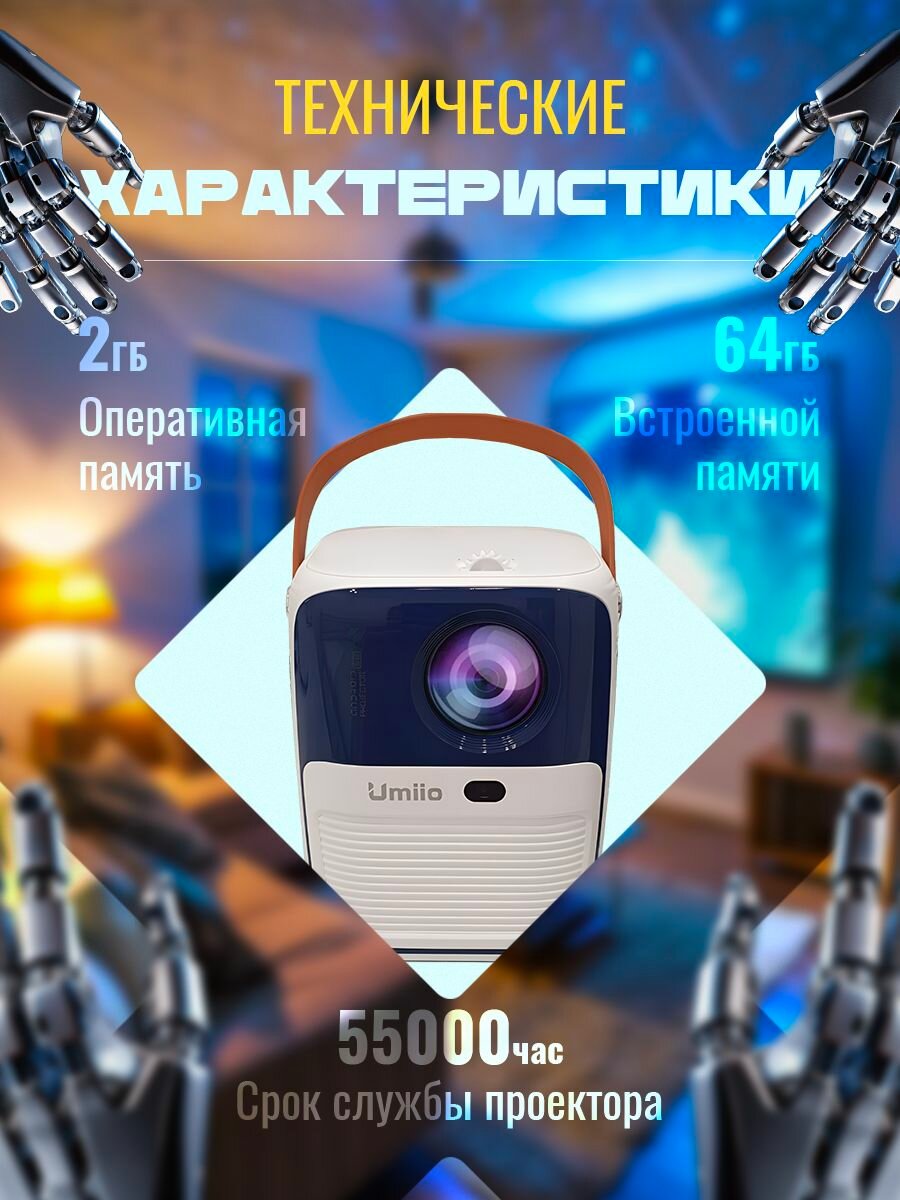 Портативный проектор Umiio Q2 - Full HD, Android, HDR, Bluetooth, Wi-Fi, Белый информация: