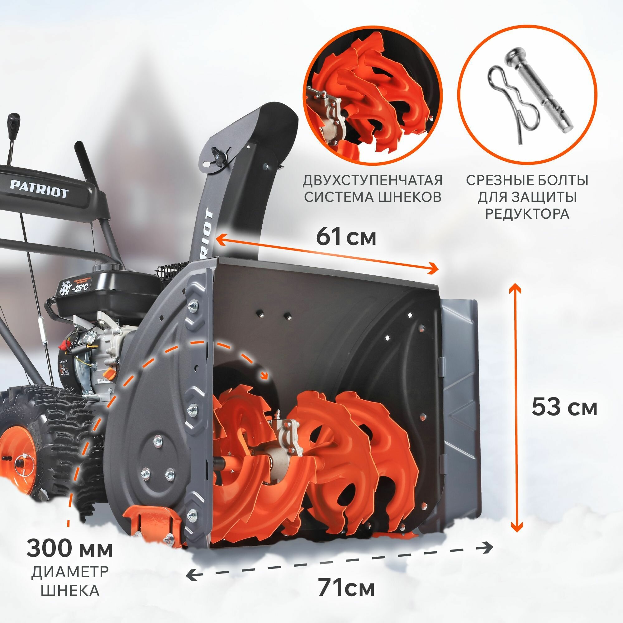 Снегоуборщик PATRIOT PS 707 (426109707), колесный, бензиновый, 7 л. с., черный информация: