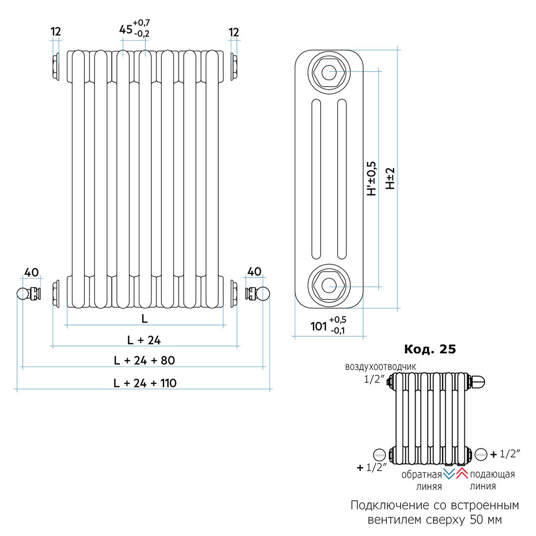 Стальной трубчатый радиатор IRSAP RT TESI/3 565 EL20 CL.01 T25 информация: