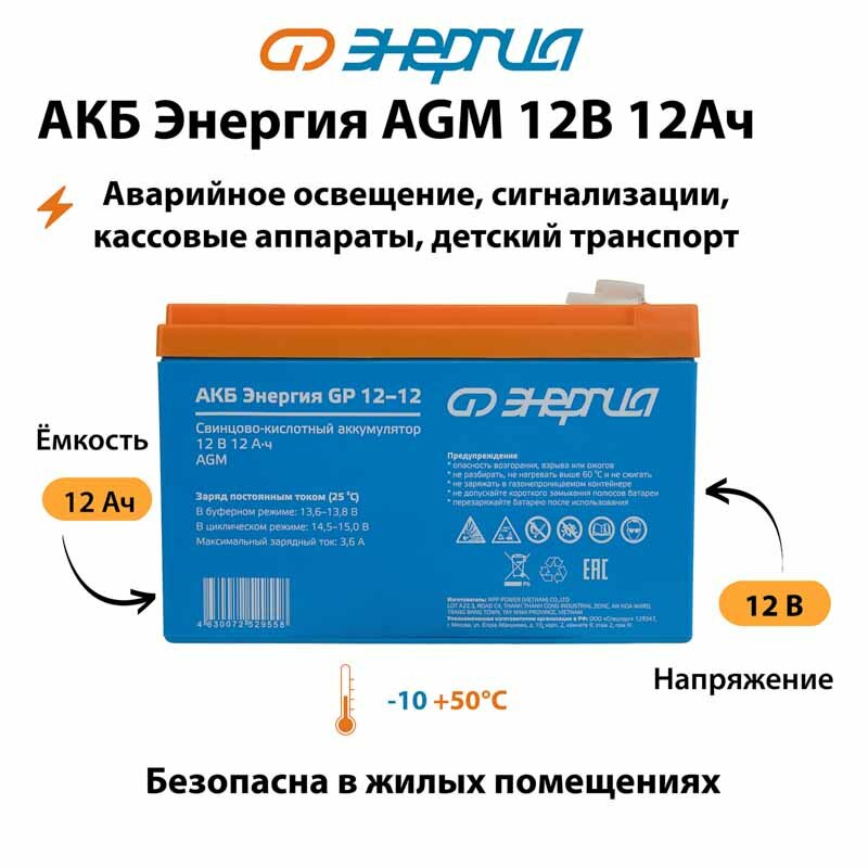 Аккумулятор для ИБП Энергия AGM 12v 12Ah информация: