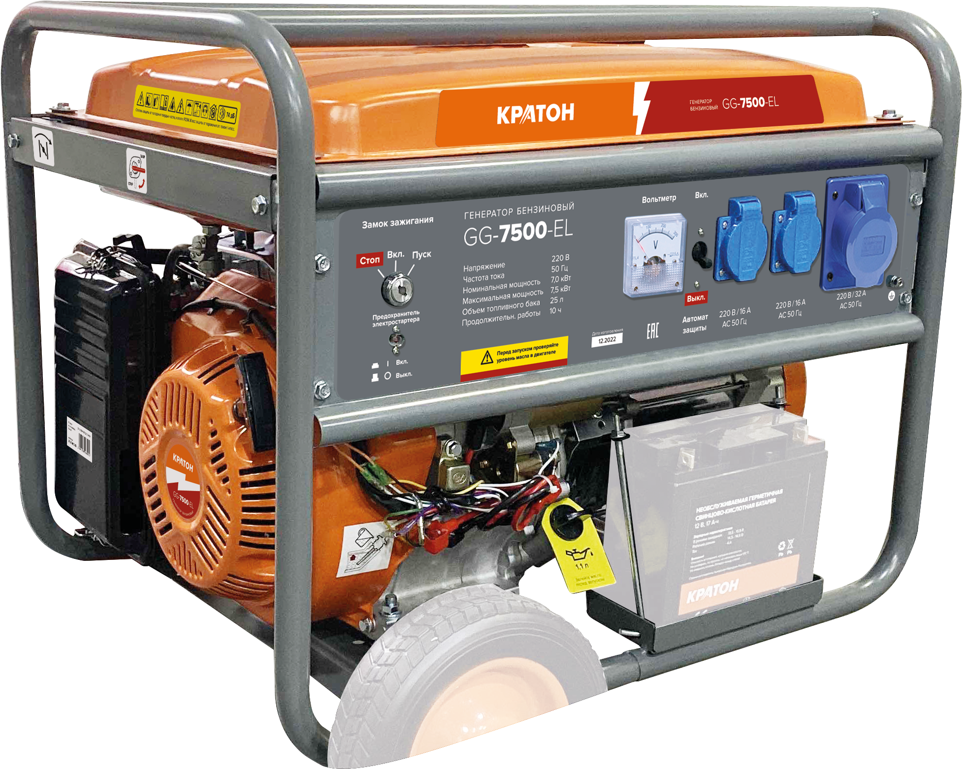 Генератор бензиновый Кратон GG-7500-EL, 7,5 кВт, однофазный с электростартером информация: