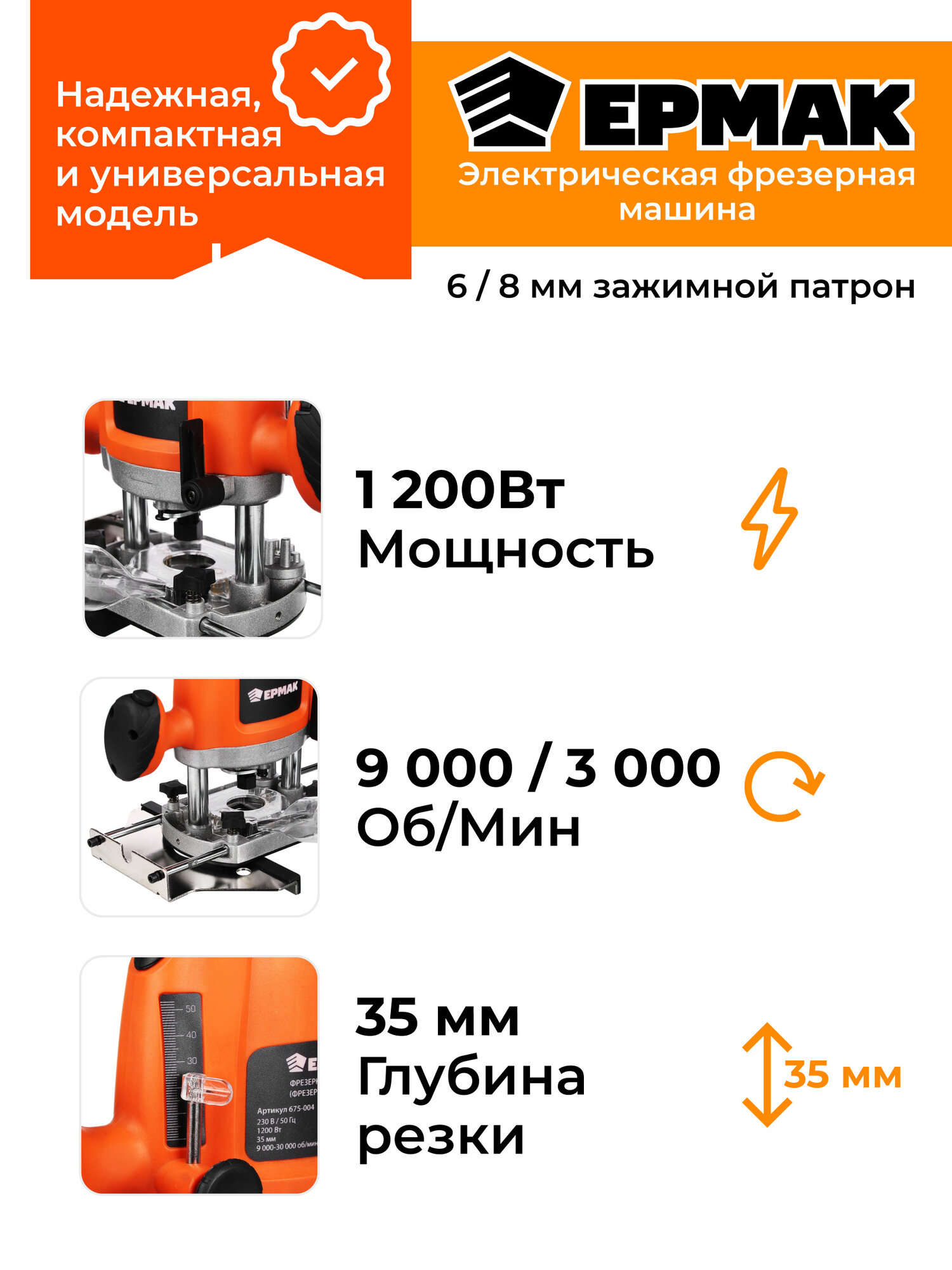 Фрезерная машина электрическая двуручная Ермак 1200 Вт по дереву информация: