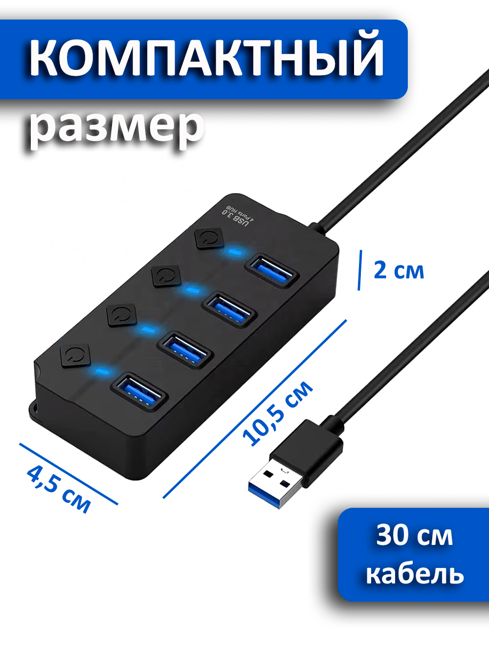 Разветвитель JIAYI 504 USB 3.0, 4 разъема, активный, черный, 30см информация: