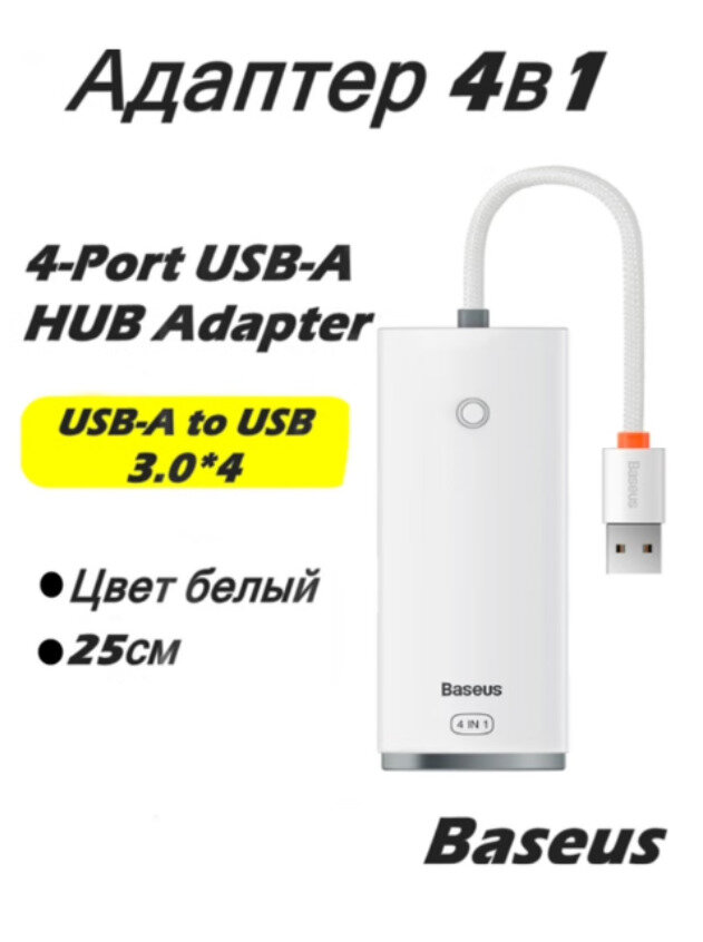 Отзывы на Хаб 4-портовый адаптер-концентратор серии Baseus Lite,Baseus USB-A HUB (WKQX030002) белый 25см