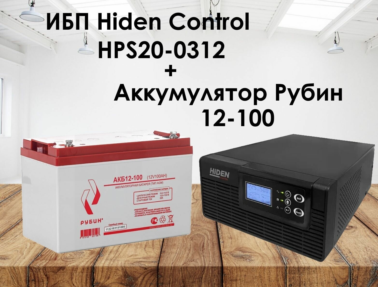 10 цен на Комплект ИБП Hiden Control HPS20-0312(300Вт) + АКБ Рубин 12-100Ач 12В