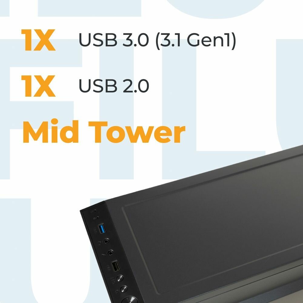 Корпус компьютерный, игровой, USB 2.0 Type-A, USB 3.2 Gen1 Type-C, черный, TechFurn C305 V2, 1 шт.