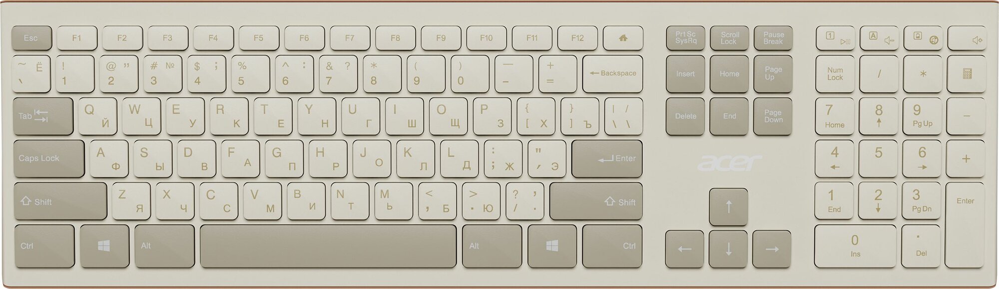 Набор клавиатура+мышь Acer OCC200 кл/мышь:беж/коричн WLS slim(ZL.ACCEE.004)