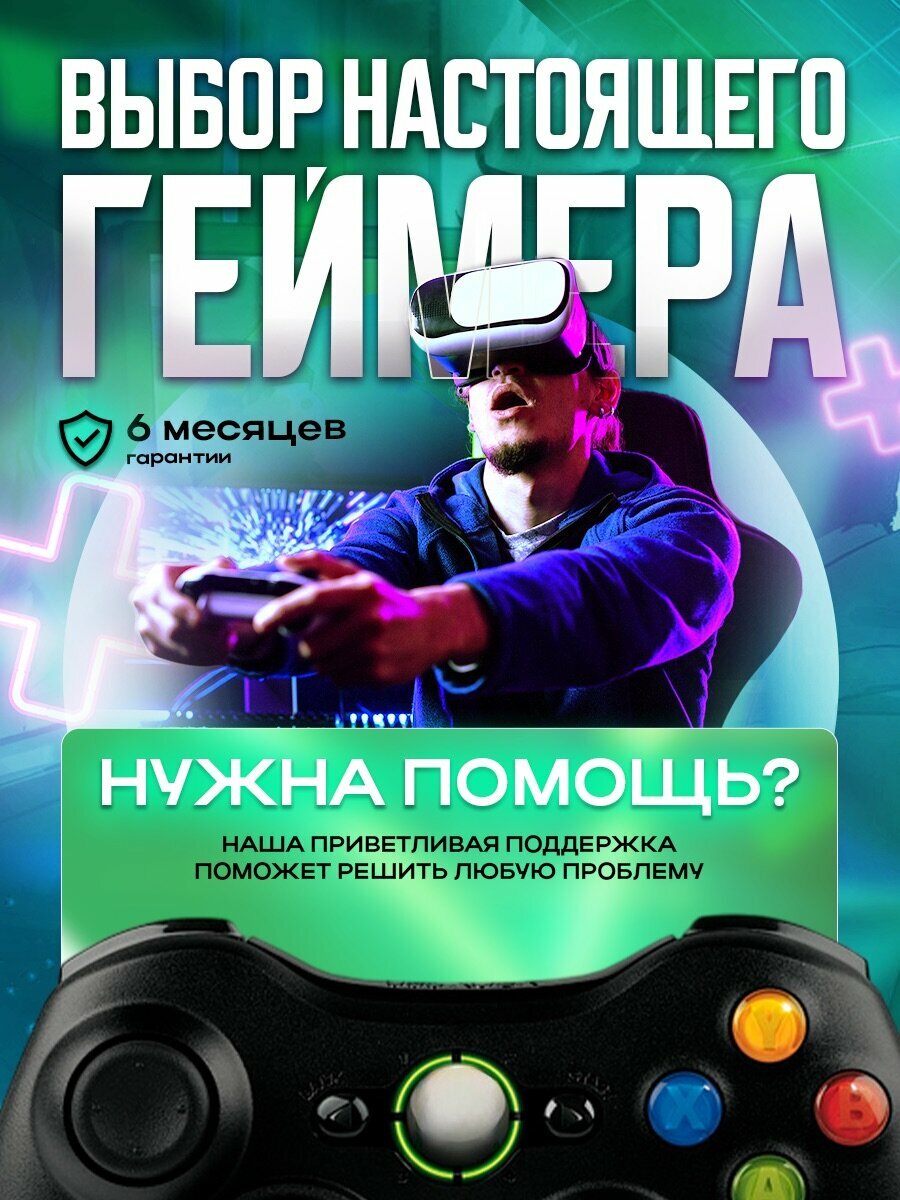 Беспроводной геймпад для xbox 360 и PC, джойстик для Xbox 360 USB с виброотдачей, черный информация: