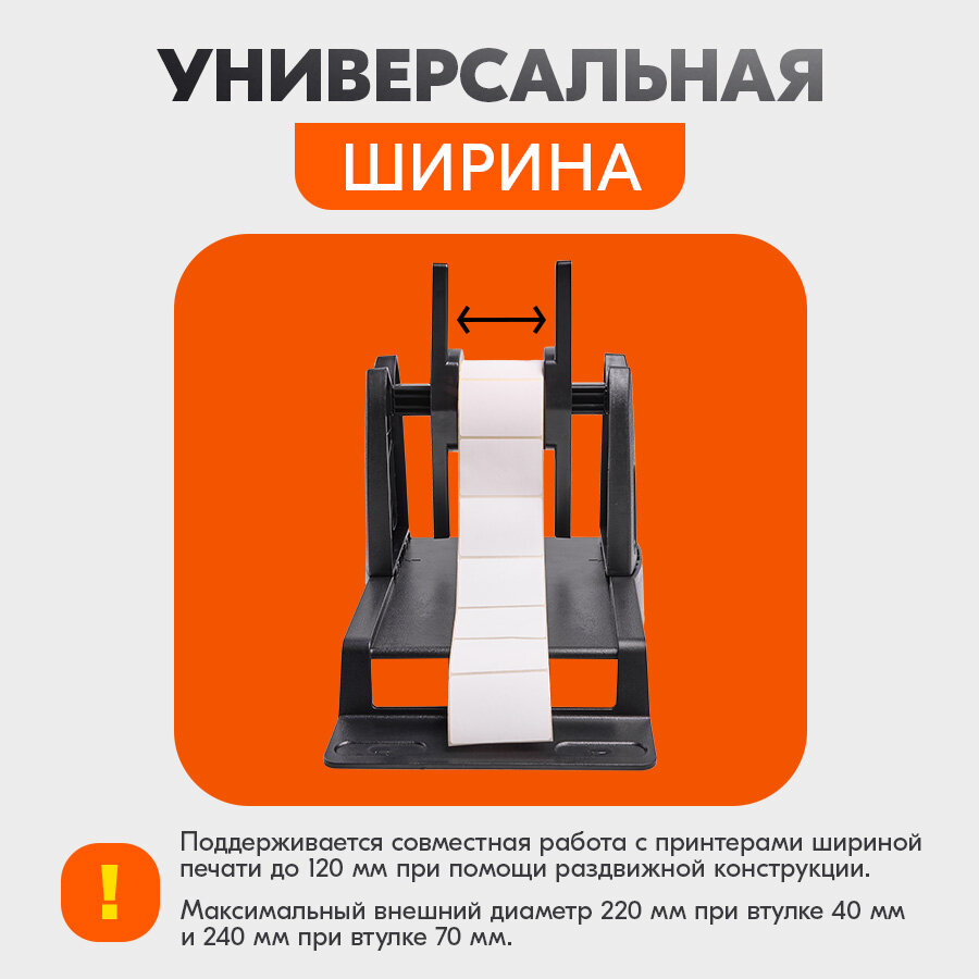 Внешний держатель рулона этикеток/термоэтикеток самоклеящихся, смотчик/намотчик для термопринтера, 220мм/240мм, черный информация: