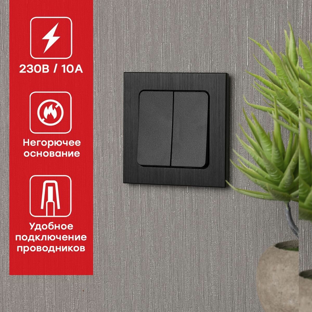Отзывы на Механизм проходного выключателя 2-клавишного Стокгольм, 10А, в/к, черный, EKF PROxima