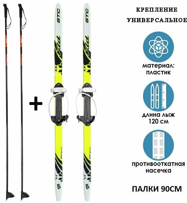 10 цен на Лыжи STC, 120 см, + палки 90 см , крепление под свою обувь 25-36 размер