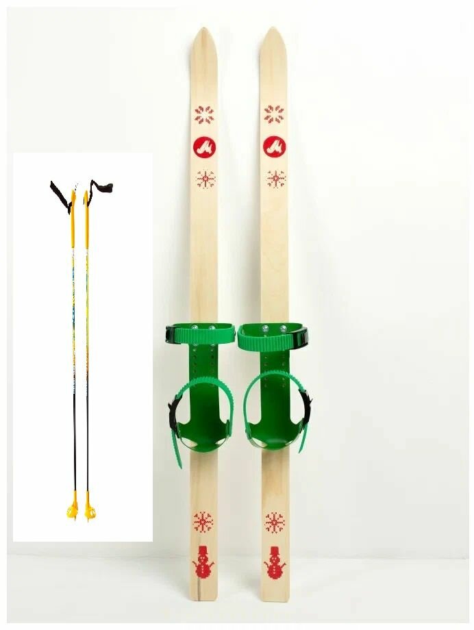 10 цен на Лыжи детские деревянные 70,110,120,130 см с креплением Junior и палками из стекловолокна