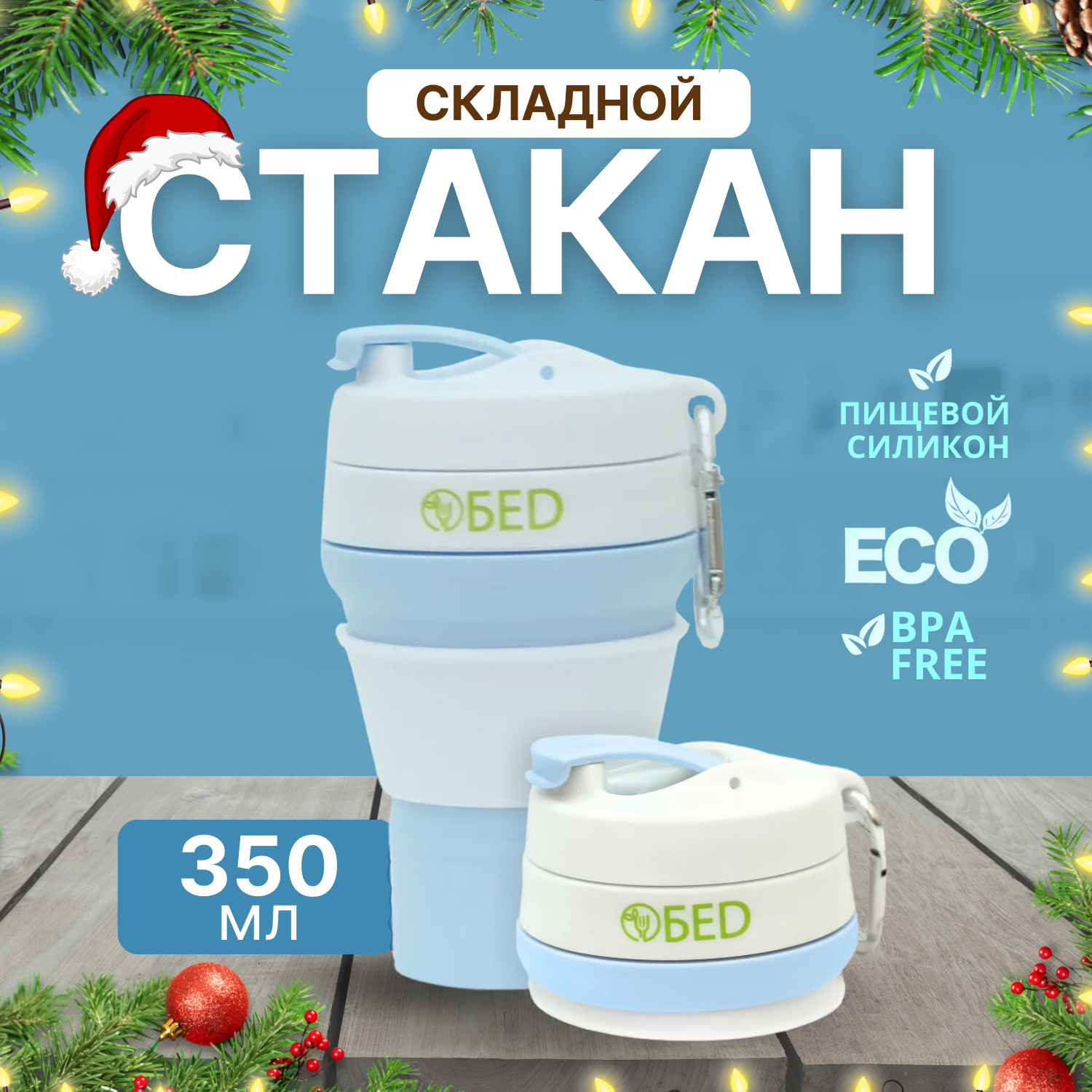 Отзывы на Складной стакан для кофе многоразовый с крышкой, 350 мл, бело-голубой, ОБЕD