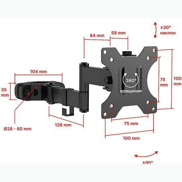 Uniteki Крепление-кронштейн fmp1075 на трубу для монитора или тв наклонно поворотный диагональ 17-32 . 14 745 ₽