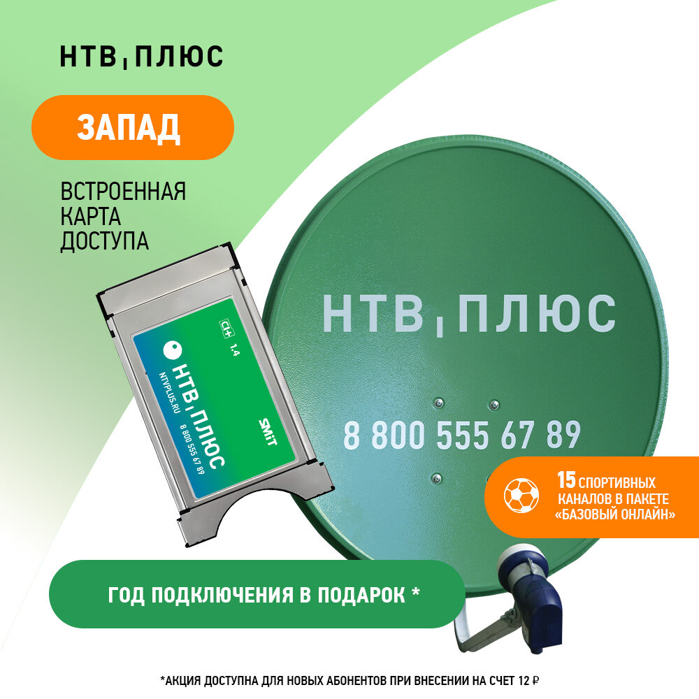 Спутниковое ТВ комплект нтв-плюс: ТВ-модуль и антенна для Западных регионов информация: