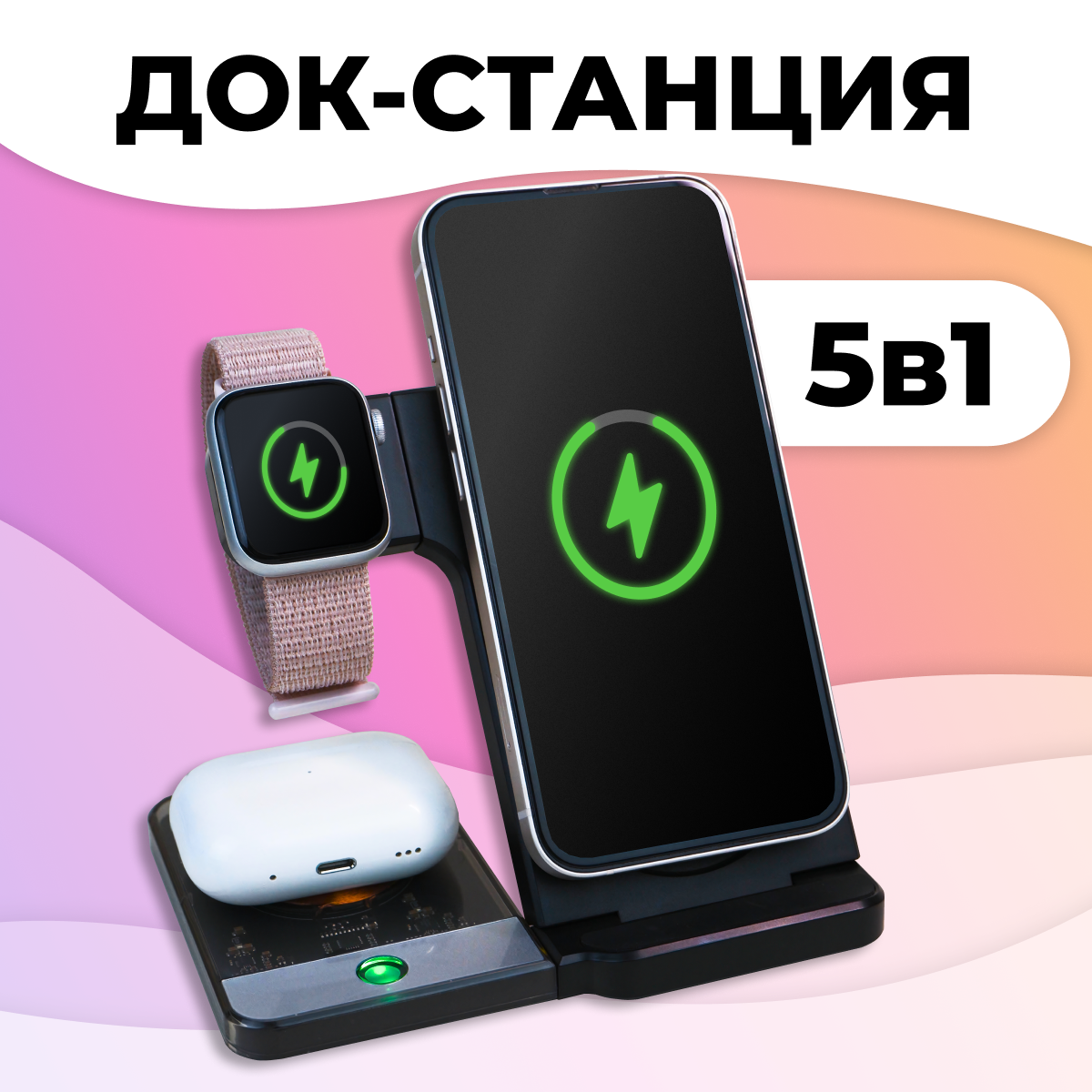 Отзывы на Беспроводная зарядка 5 в 1 для телефона iPhone / Зарядное устройство MagSafe 15W на Айфон / Черная