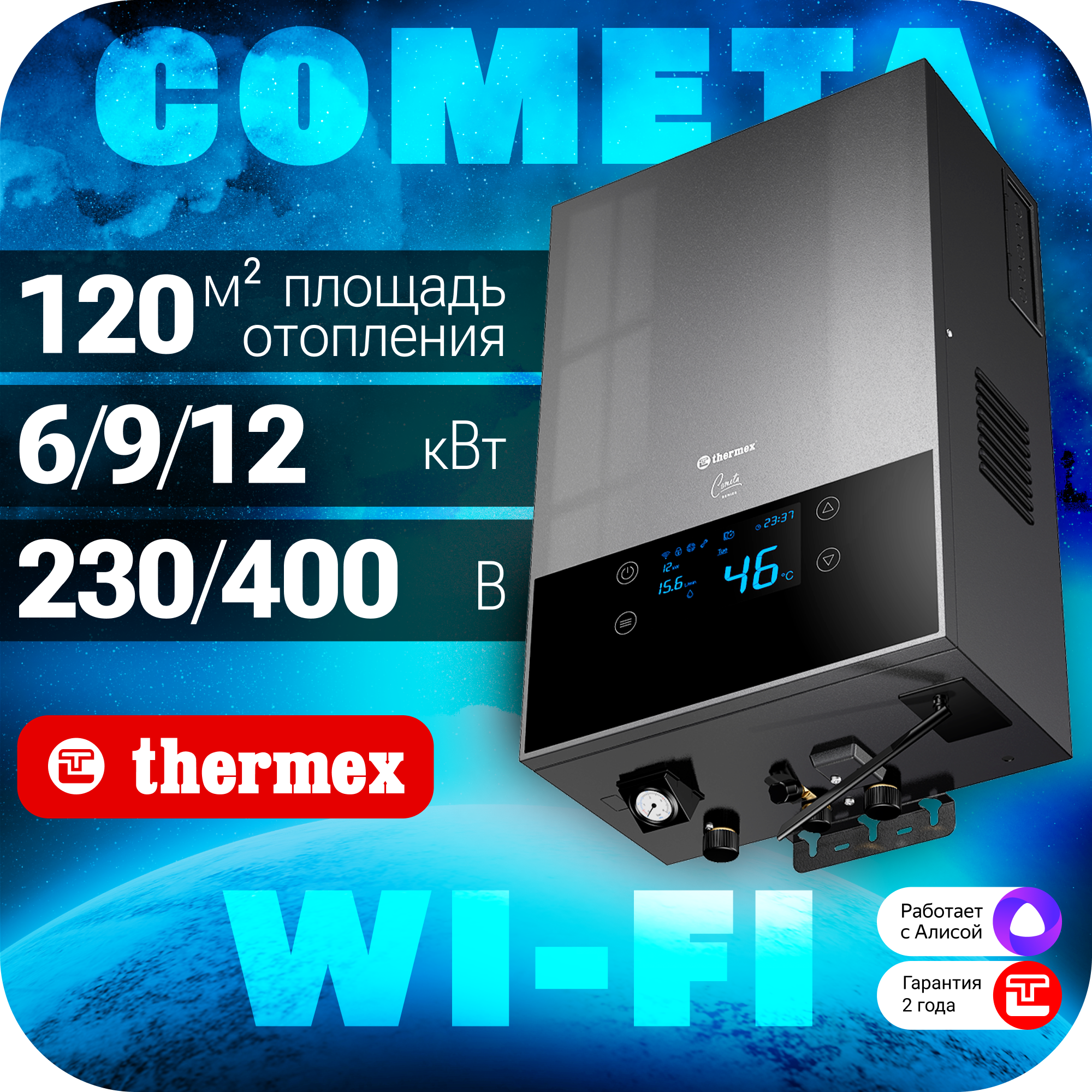 Котел электрический THERMEX Cometa 6-12 кВт. управление дистанционно через Wi-Fi информация: