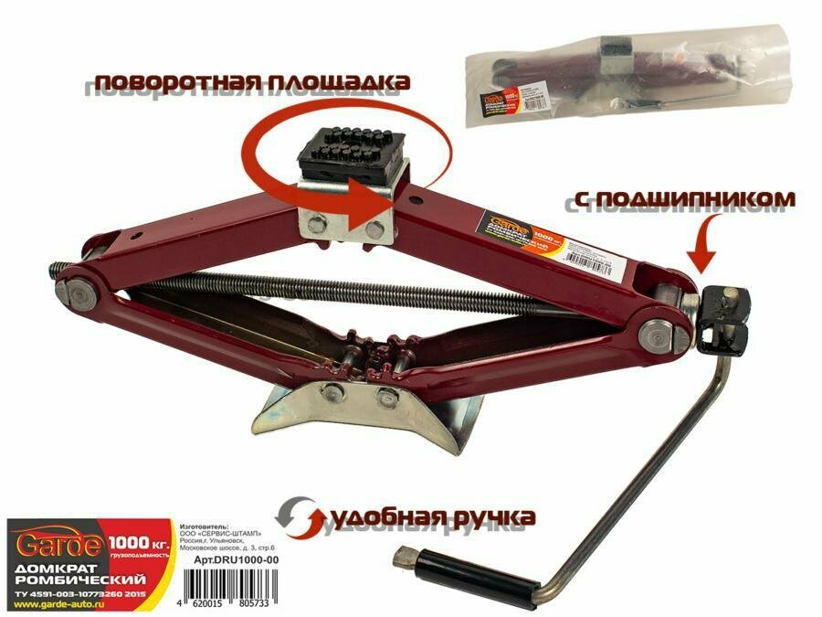 Отзывы на GARDE DRU1000-00 Домкрат ромбический винтовой универсальный Garde 1000кг 100-400мм