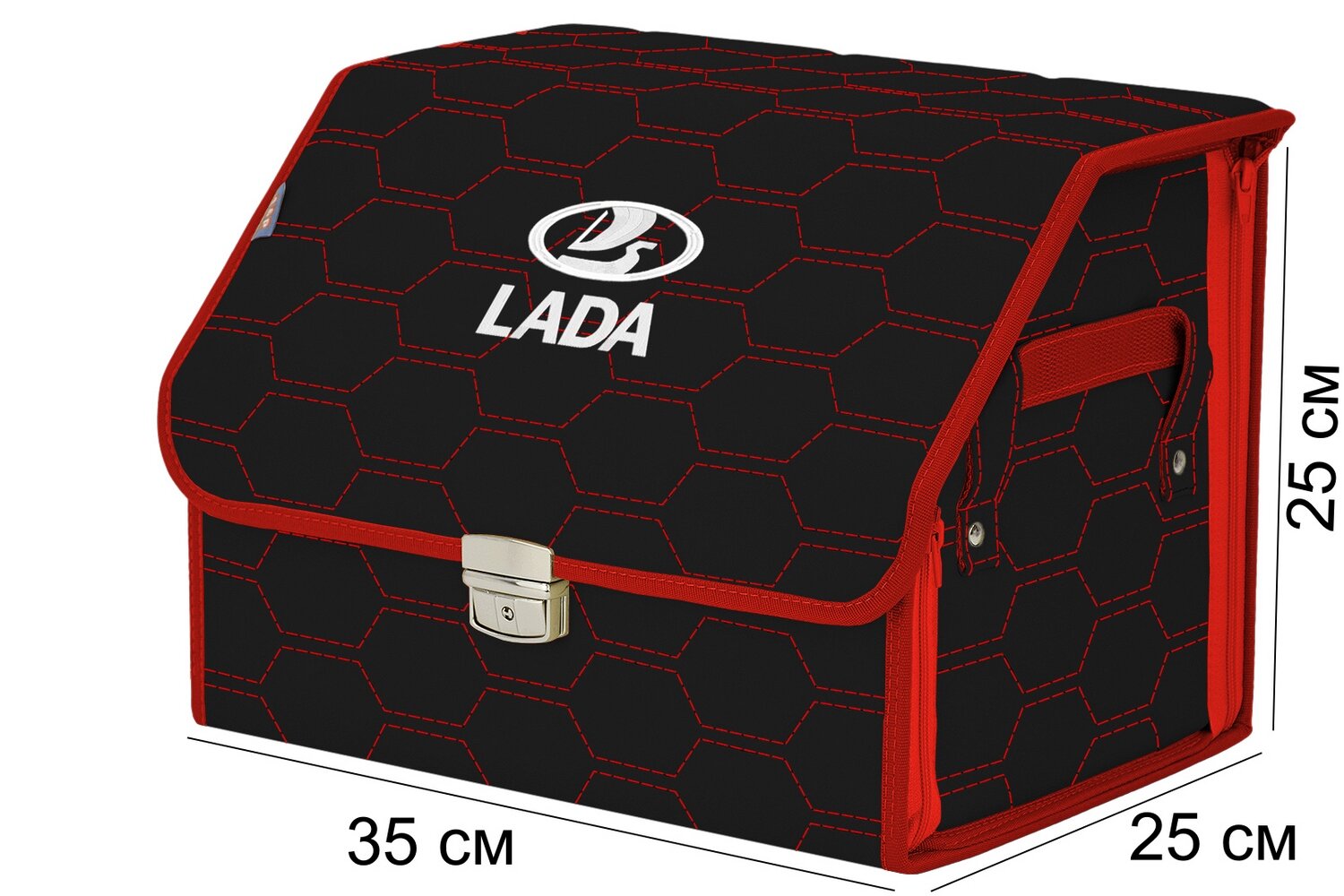 Органайзер-саквояж в багажник "Союз Премиум" (размер L). Цвет: черный с красной прострочкой Ромб и вышивкой LADA (лада).