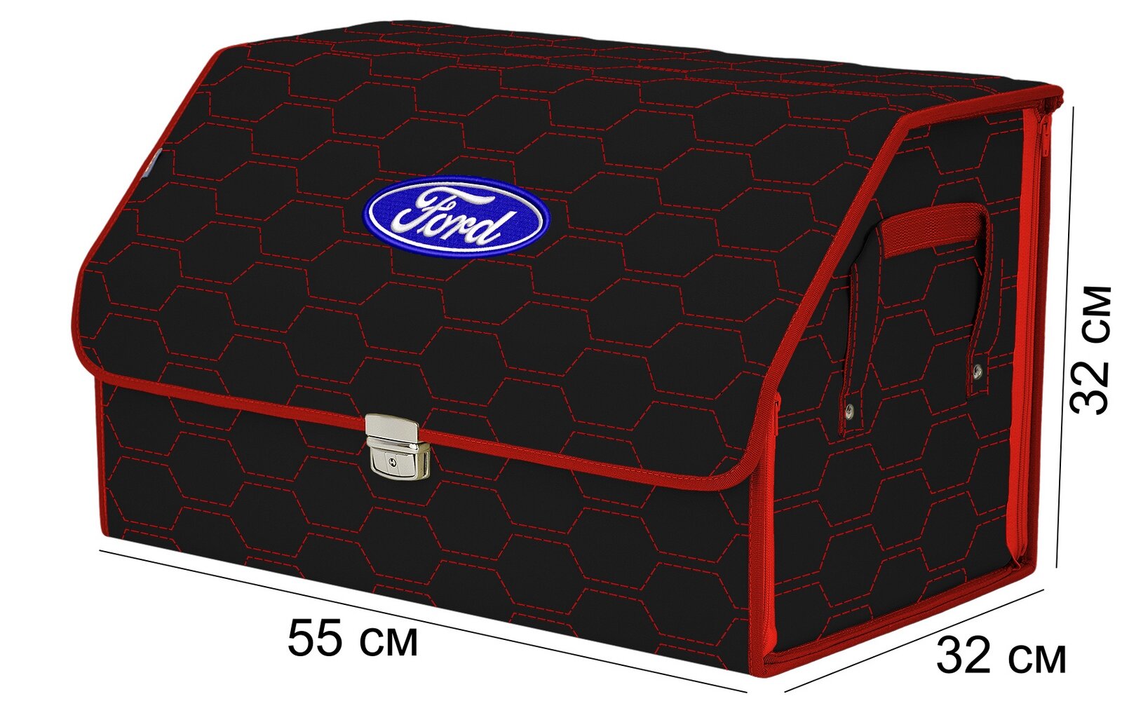 Органайзер-саквояж в багажник "Союз Премиум" (размер XL Plus). Цвет: черный с красной прострочкой Соты и вышивкой Ford (Форд). 14 231 ₽